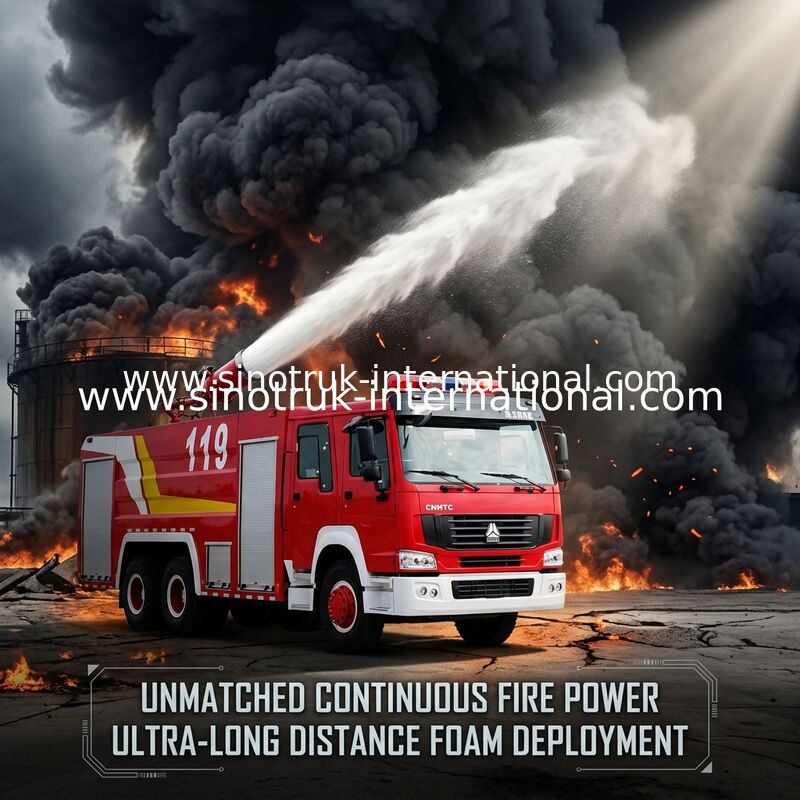 The fire truck, also known as the fire engine, is specially used for fire or other emergency using vehicles. Fire engines can be classified according to the functions of water tank fire truck, foam fire truck, agricultural fire truck, fire fighting and sprinkling truck and other special using vehicles. Fire engines usually stationed at the fire station, met the alarm by firemen to drive the scene. SINOTRUK HOWO series fire truck chassis modified liquid carrying capacity of 8 tons, 12 tons, 16, 25, and 31 tons of water tankers, foam fire truck and other products.